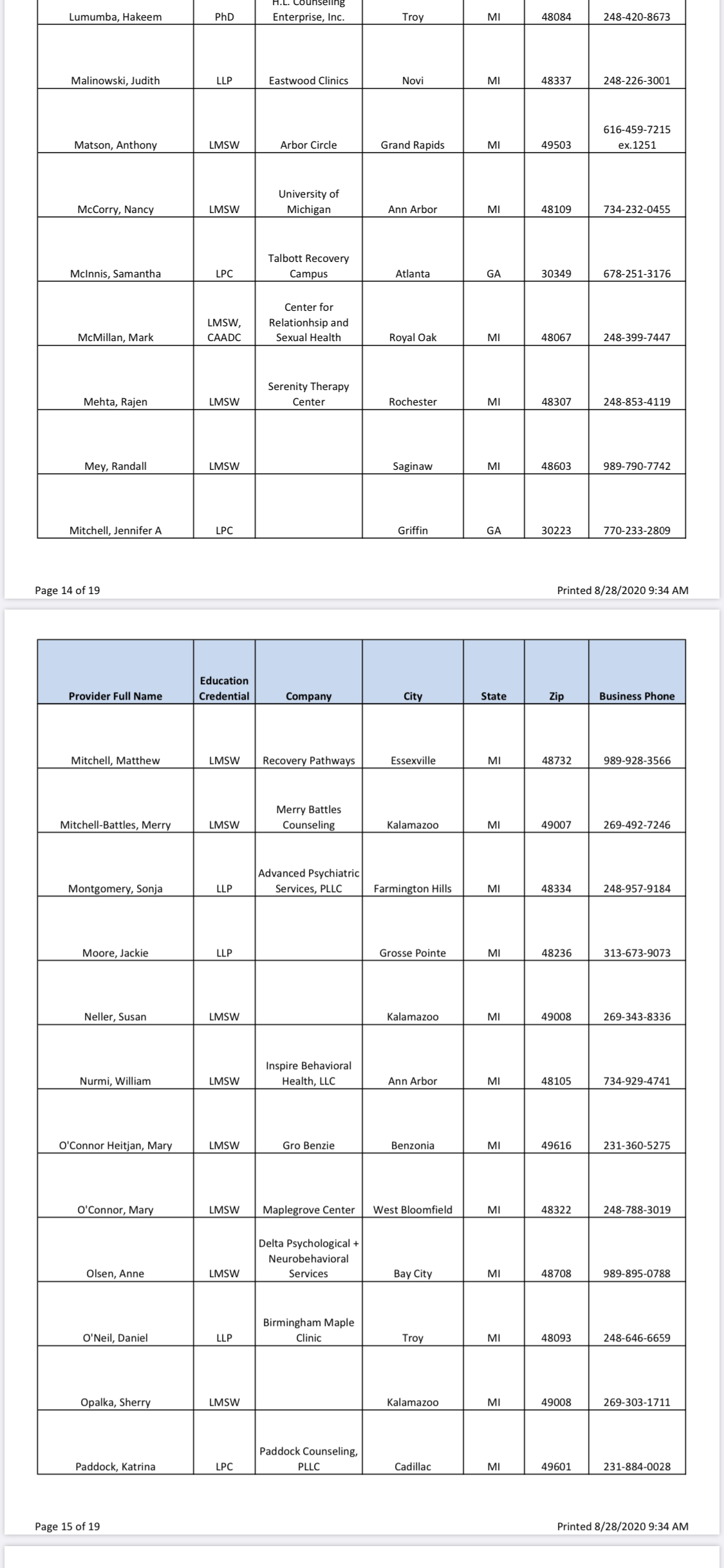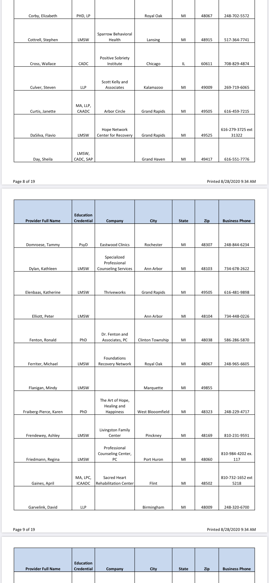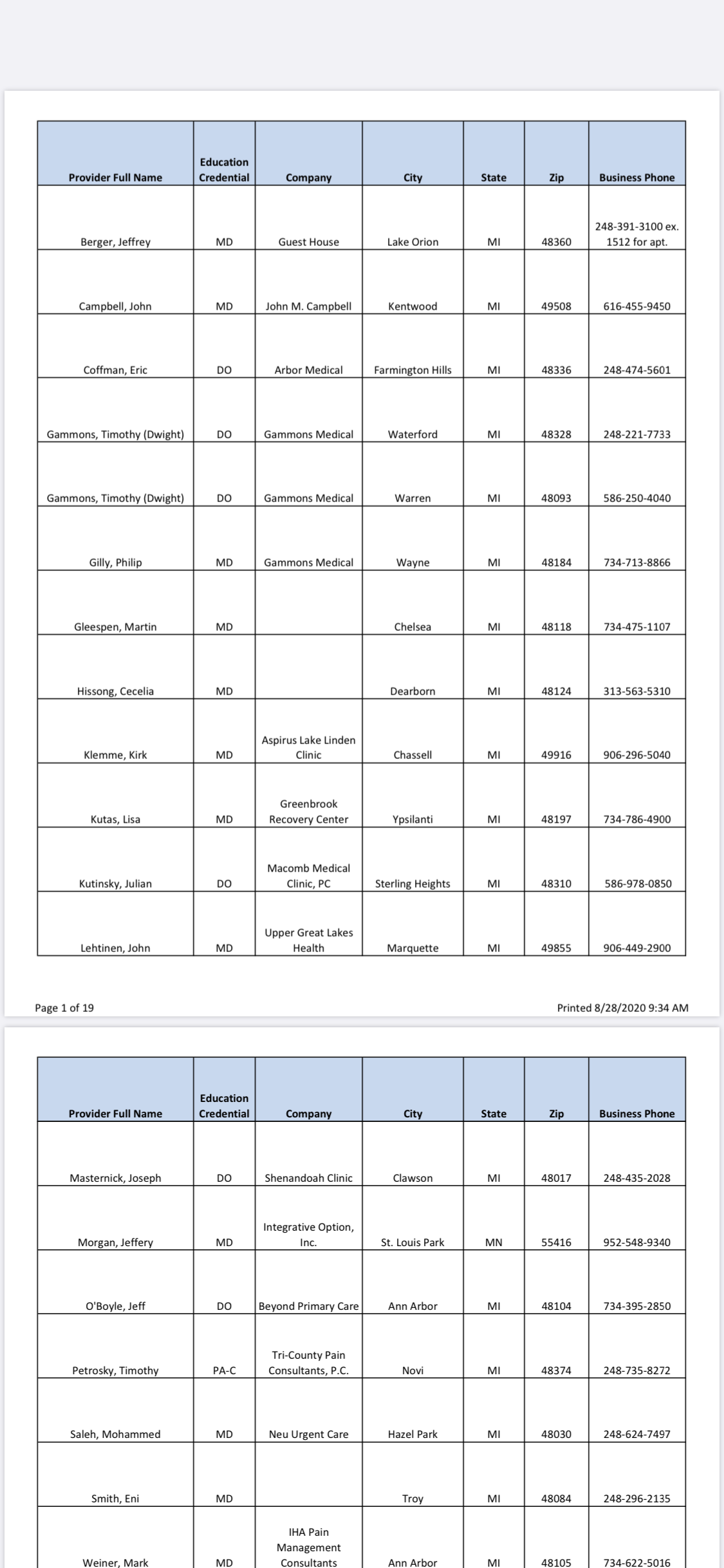 Since I was only given two names in the very beginning, who both had an upfront $400 out of pocket charge on TOP of insurance for “paperwork” only for HPRP (which I didn’t know until I got there and they demanded payment before seeing me, and they don’t all have extra charges like that) I’m going to give you guys a full list of all approved providers and in the next few weeks I will be calling every one and will soon list all of their upfront charges. I’m still 100% convinced there is a quid-pro-quo situation going on here and that the real reason my initial evaluator (Dr Fox- DONT GO TO HIM) grossly exaggerated and even lied on my initial evaluation and then refused to let me see it is because if he didn’t send me to rehab then HPRP wouldn’t “trust him anymore” (he actually said this to me, wish I recorded it) and then he would lose out on this huge cash intake. So don’t go to evaluators who charge an upfront fee!! Here’s the full list as of 8/28/20, will soon update with the fees