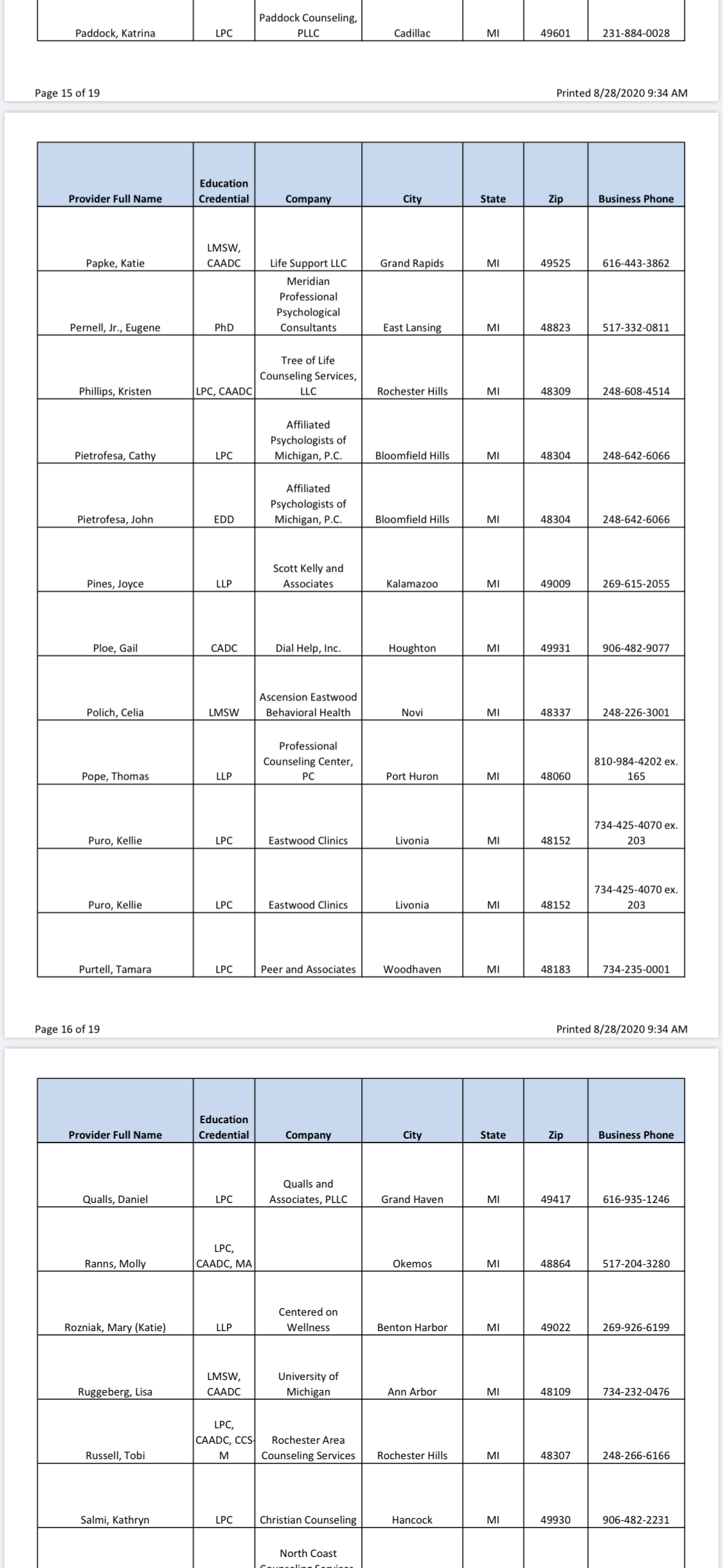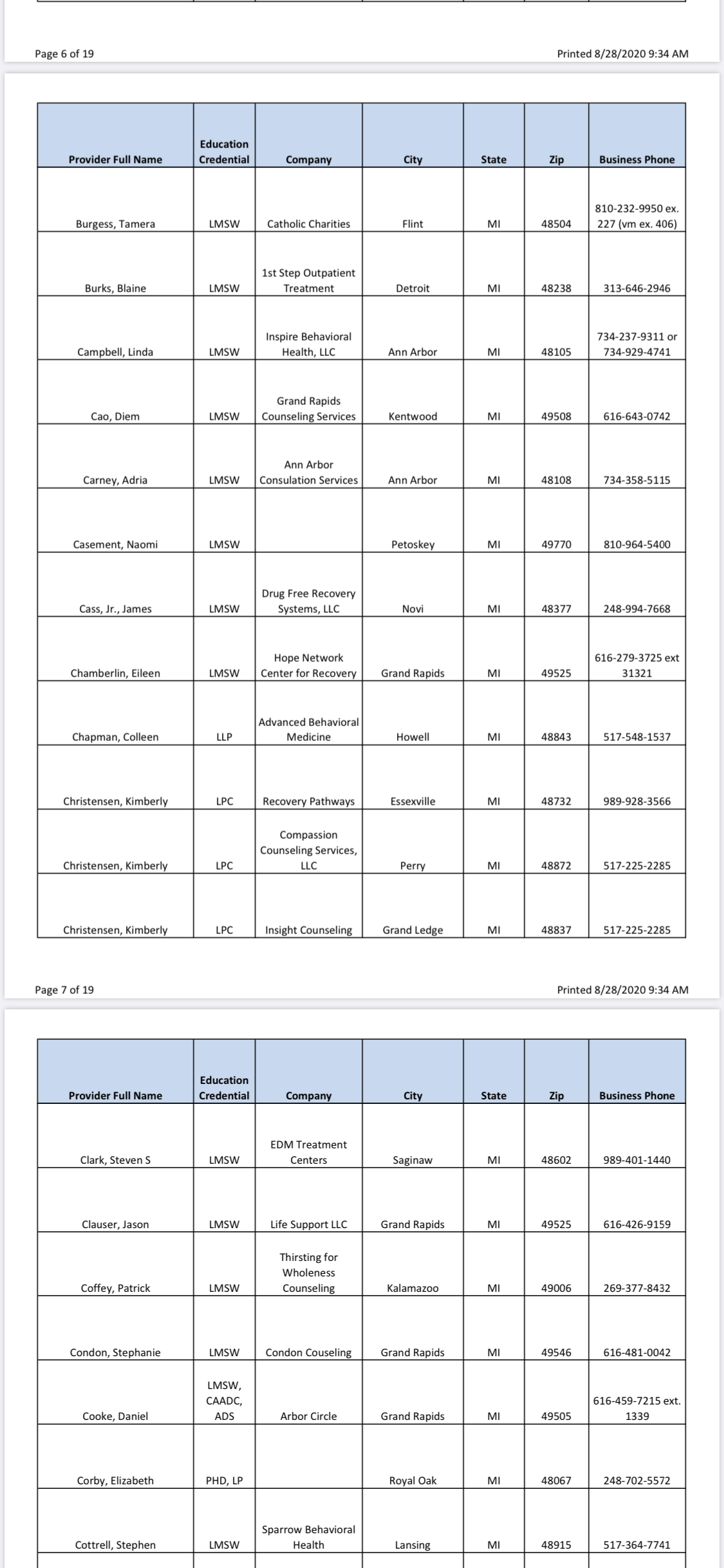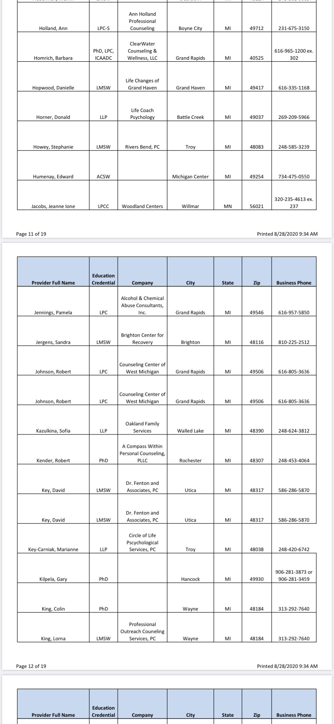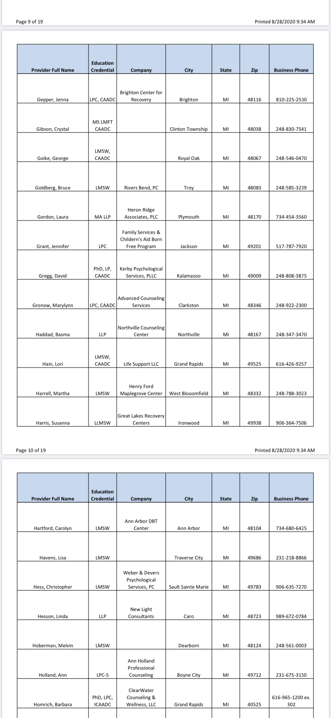 Since I was only given two names in the very beginning, who both had an upfront $400 out of pocket charge on TOP of insurance for “paperwork” only for HPRP (which I didn’t know until I got there and they demanded payment before seeing me, and they don’t all have extra charges like that) I’m going to give you guys a full list of all approved providers and in the next few weeks I will be calling every one and will soon list all of their upfront charges. I’m still 100% convinced there is a quid-pro-quo situation going on here and that the real reason my initial evaluator (Dr Fox- DONT GO TO HIM) grossly exaggerated and even lied on my initial evaluation and then refused to let me see it is because if he didn’t send me to rehab then HPRP wouldn’t “trust him anymore” (he actually said this to me, wish I recorded it) and then he would lose out on this huge cash intake. So don’t go to evaluators who charge an upfront fee!! Here’s the full list as of 8/28/20, will soon update with the fees